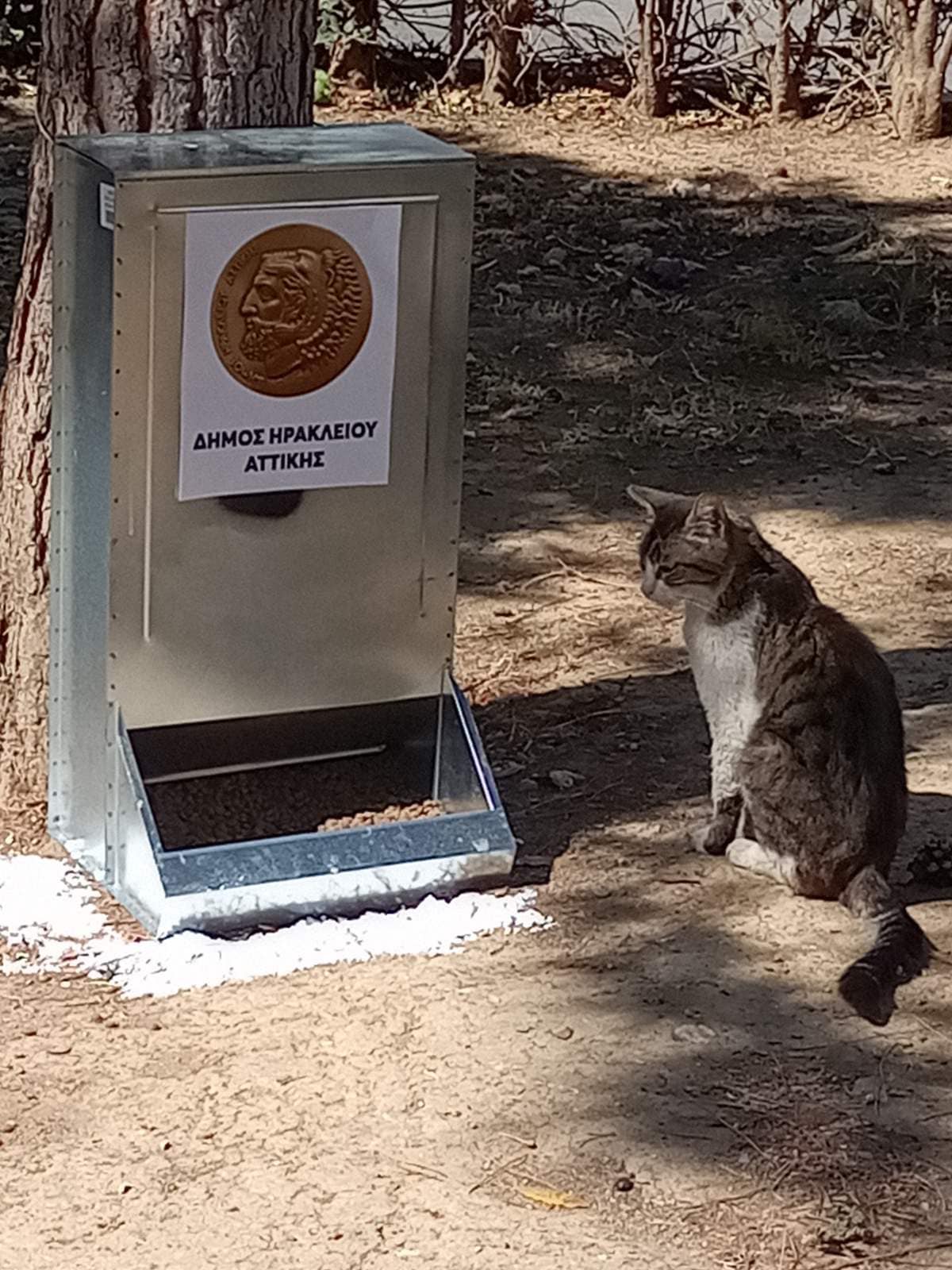 Ταΐστρες και ποτίστρες για τις αδέσποτες γάτες έχει τοποθετήσει σε 24 σημεία της πόλης ο Δήμος Ηρακλείου Αττικής. Τα σημεία καλύπτουν όλες τις γειτονιές του Ηρακλείου, σύμφωνα με το σχέδιο που εκπόνησε το Γραφείο Αστικής Πανίδας του Δήμου βασισμένο στις καταγεγραμμένες ανάγκες. Σε αυτά τα σημεία, οι τετράποδοι δημότες μπορούν να βρουν φαγητό και νερό, ειδικά κατά τους καλοκαιρινούς μήνες που χρειάζονται περισσότερη δροσιά.