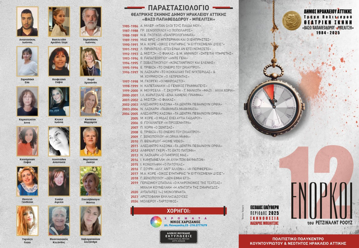 Η Θεατρική Σκηνή του Δήμου Ηρακλείου Αττικής επιστρέφει στο σανίδι με την παράσταση οι «12 Ένορκοι». Μετά την καλοκαιρινή περίοδο, η θεατρική ομάδα, με σκηνοθέτη τον Λάζαρο Μπελίτση και θίασο 18 ερασιτεχνών ηθοποιών και συντελεστών, παρουσιάζει ξανά το διαχρονικά επίκαιρο έργο του Ρέτζιναλντ Ρόουζ στο θέατρο του Πολιτιστικού Πολύκεντρου «Ηλέκτρα Αποστόλου» (Κουντουριώτου και Νεότητος) τα τρία πρώτα Σαββατοκύριακα του Νοεμβρίου: 1 και 2, 8 κα 9, 15 και 16, με ώρα έναρξης στις 20.00 και ελεύθερη είσοδο για όλες και όλους.